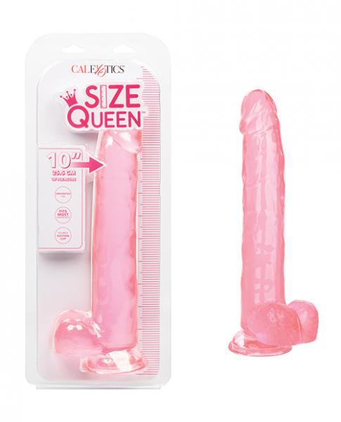 Size Queen 10 inches Pink Realistic Dildo from California Exotic Novelties. For the Size Queen inside all of us, we are pleased to introduce one of our most delectable products the 10 inches Size Queen. With a firm, life like feel, you will not be able to distinguish this from the real thing, and that is exactly what we are aiming for. With a realistic head and veins a 10 inches long shaft, and an overall length of 12 inches, our inches Size Queen delivers more than the name implies. Take it all in, from the flexible shaft to all of the life like features. The sturdy suction cup base will allow you endless hours of enjoyment while mounted to any non-porous surface. To make things even better? The 10 inches Size Queen is fits most harnesses. The flex and bends mimics that of its natural human counterpart. Exactly what your body was built for. Embrace the Size Queen in yourself and hop on board. It is going to be a fun ride. Total length 12 inches, insertable 10 inches. by 2 inches wide. Features Phthalate free, unscented Thermoplastic Rubber TPR. 1 year warranty.