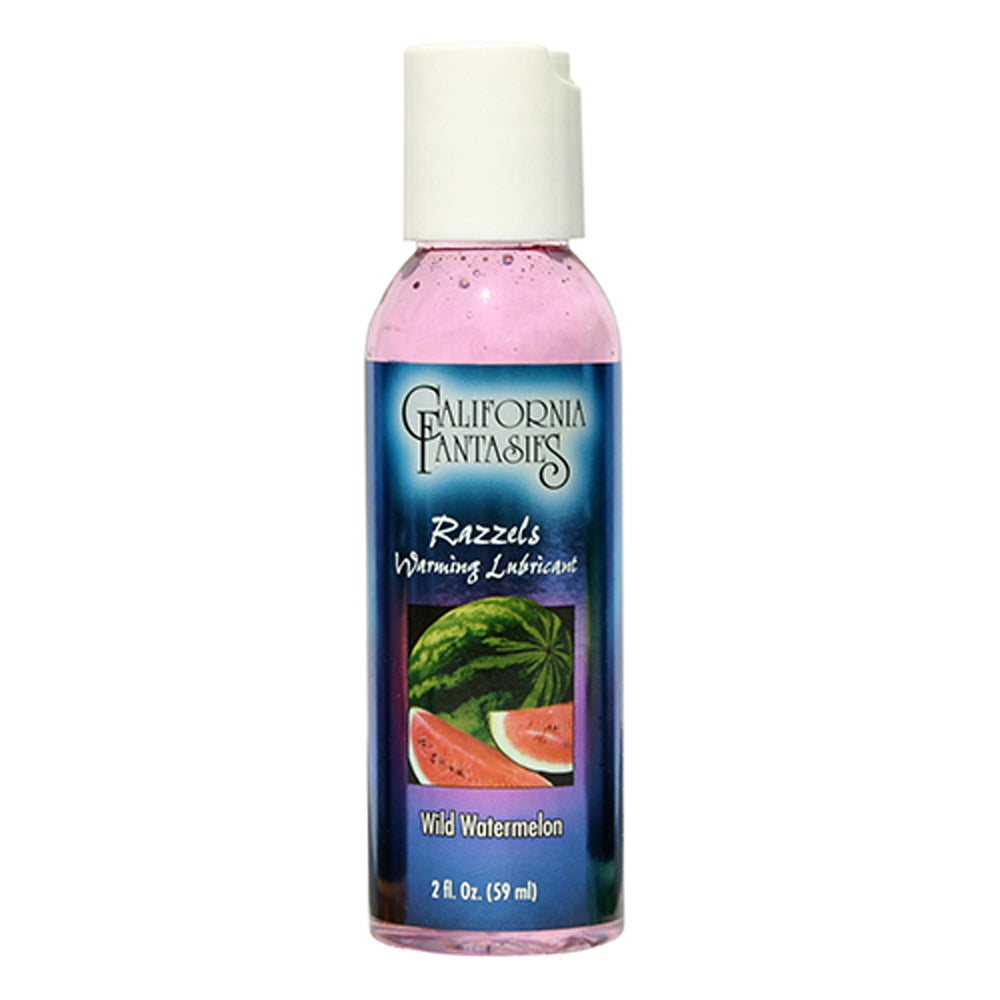 Excellent lubricant that warms and tastes great! Six great flavors with no bitter after taste Warms as you rub it in and gently blow Silky smooth lubricant that does not get sticky Latex compatible Available in: Sinful Strawberry, Kissable Cherry, Pleasurable Green Apple, Sensational Orange, Tropical Teeze and Wild Watermelon. Available in 2 ounces and 4 ounces bottles and 10ml pillow pak travel size. Each sold separately. Warm each other with these yummy Razzels Flavored, Warming Lubricant. Apply, rub blow and dazzle your partner into ecstasy. Razzels is great for warming up foreplay, oral sex and intercourse. Instructions for use: apply a small amount of Razzels Flavored, Warming Lubricant to the desired areas of the body you wish to lubricate. Romance your lover by caressing their skin with your fingers then gently blowing on it to give them an enticingly warm sensation. With an arousing kiss of the lips, you will taste Razzels pleasurable flavor. Available is six yummy flavors, Razzels will keep you coming back for more so take your time and let your senses be dazzled! Razzels Warming Lubricant from California Fantasies. California Fantasies personal care products for romantic pleasures.