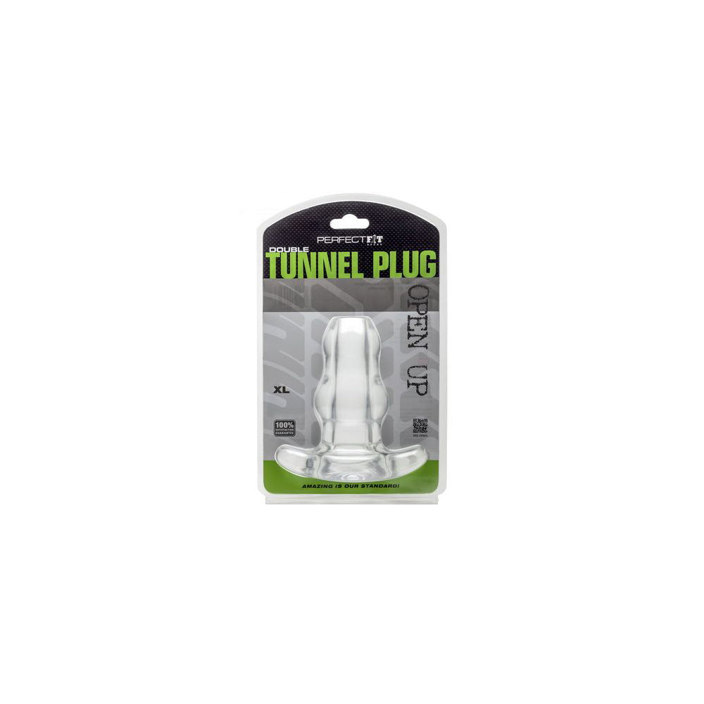 The Double Tunnel Plug features two plugs that slightly taper to the tip which makes it one of the most innovative butt plugs available on the market. In addition to being a standard butt plug, you can use the tunnel hole that goes all the way through the plug for various play including lube insertion, fingers, watersports and toys. The clear version also makes it possible to see right into the other person.