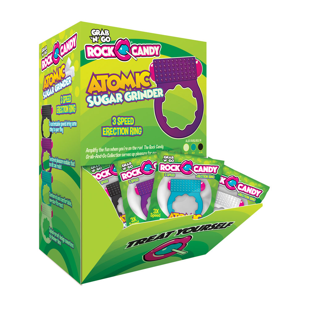 If you’re looking for an extra sweet sensation for everyone involved, the Atomic Sugar Grinder is perfect for you and your lover! With a square profile of soft, body safe material and a powerful 3-speed vibrator attachment, this is the perfect accessory to sweeten up a sexy night in. This comfortable c-ring is easy to wear and lengthens performance while providing out of this world stimulation to both partners with vibrating components that can match your desired amount of vibration! Here’s the sweet deets: