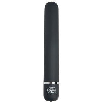 Fifty Shades Pleasure Collection Classic Vibe. A classic vibrator with a smooth form and a rounded tip to seek out your sensitive spots and please them with a selection of powerful vibration modes. Use as part of a solo play or as an accessory to your shared pleasure, applying water-based lubricant to the length of the vibrator and yourself before pressing the button on the base for your pleasure to begin. Includes a luxury satin storage bag. Requires 2 AA batteries, not included. Made of skin safe ABS plastic. Does not contain Phthalates or latex. Length: 7.00 Inches; Insertable Length: 5.00 Inches; Width: 1.00 Inches. Made in China.
