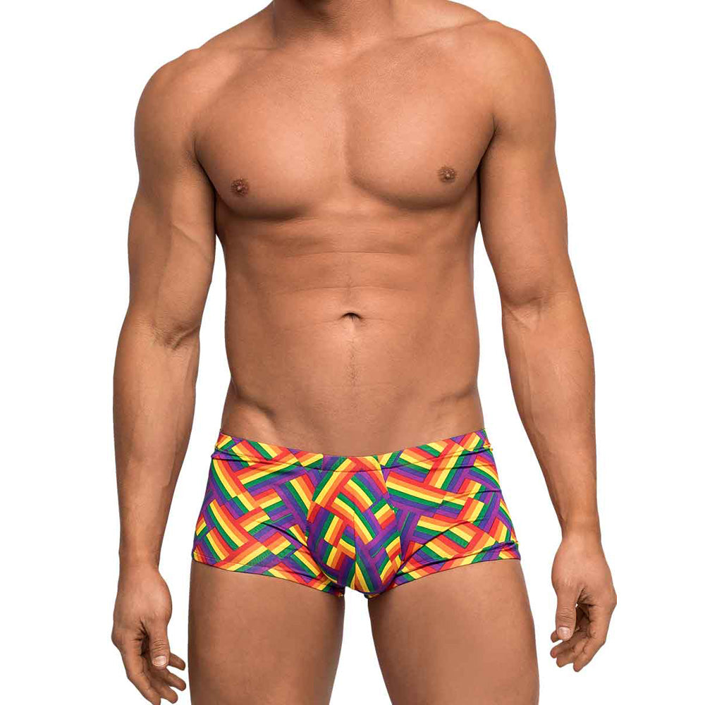 From the Pride Fest collection by Male Power, this style includes: A mini short with a low rise waist and high-cut legs featuring our contoured comfort pouch and full rear coverage.