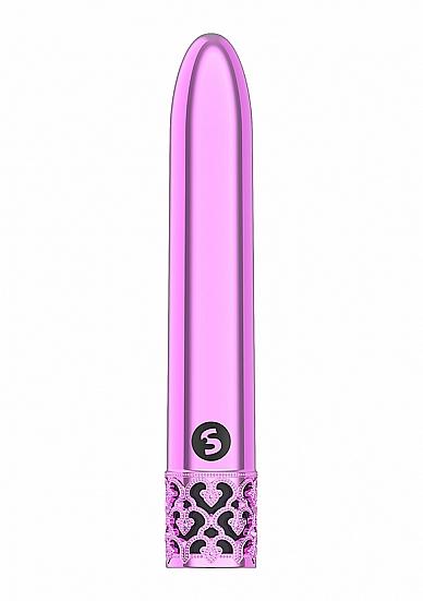 Royal Gems Shiny Pink ABS Plastic Bullet Vibrator Rechargeable from Shots Toys. You do not need to be royalty to enjoy this elegant line. The sleek metal finish makes this vibrator the crown jewel of any collection. Shiny is slim and long, great for internal or external stimulation. The magnetic fully rechargeable proprietary New Generation F-1 motor design delivers mind blowing vibrations uniformly across the full surface of the toy. Dont settle for the common, choose to be royal. Dimensions package 6.5 inches by 3.94 inches by 1.34 inches. Weight package 0.4 ounce. Product dimensions 4.25 inches. Product diameter 0.71 inch. Quantity motors 1. Rotations vibration tip 10,000 RPM. Speed modes 10. Multi speed vibrations. Noise level 45 dB. Rechargeable vibrations. Rechargeable time 120 minutes. Recharged battery life time 60 minutes. Waterproof vibrations. Splashproof for play in the shower. Phthalate free, body safe materials ABS Plastic.